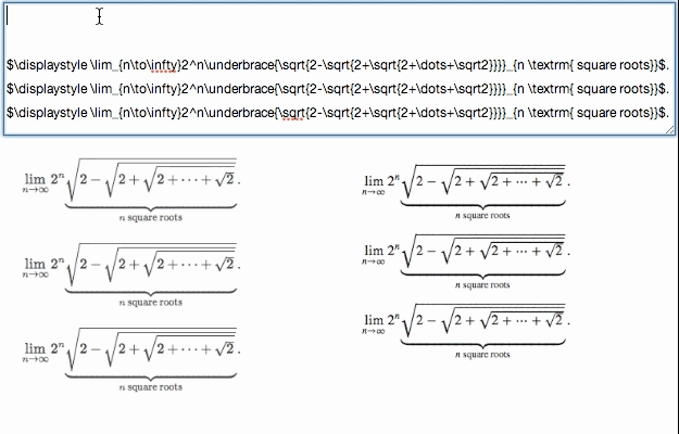 Our renderer, post-React, is on the left. A typical math editor’s preview is on the right.