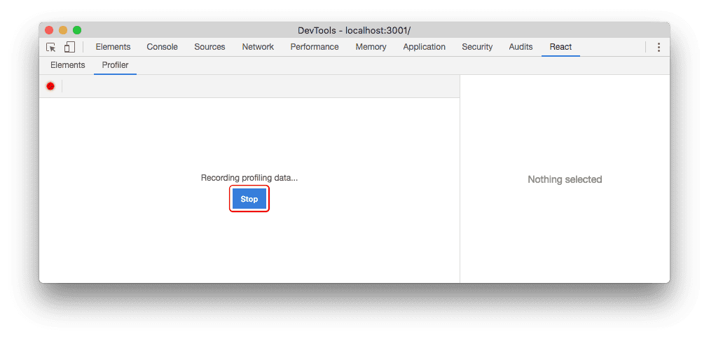 Once you’ve started recording, DevTools will automatically collect performance information each time your application renders. Use your app as you normally would. When you are finished profiling, click the “Stop” button.
